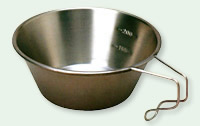 シェラカップとは右のようなカップのことです。使ってみるとこれがなかなか便利で、キャンプには手放せないツールになってしまいます。さて、その機能と特徴は?
