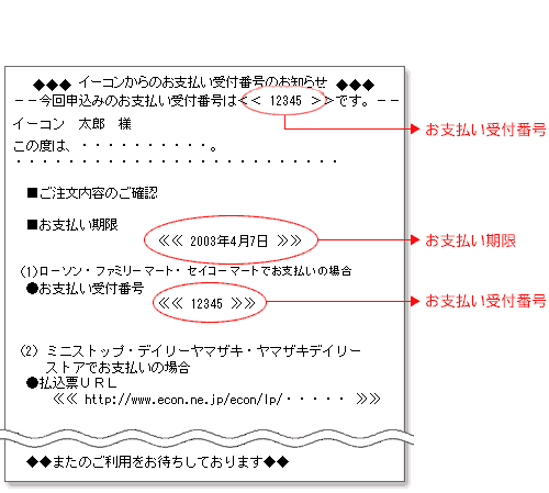 弊社より「(コンビニ名)入金のお願い」メールを送信させていただきました後、