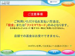 出力されたFamiポート申込券をもって30分以内にレジにて代金をお支払いください。