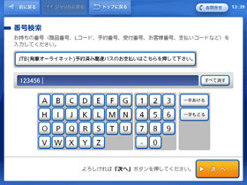 ※予約番号・申込番号・会員番号などの入力案内があった場合には、その番号を入力してください。