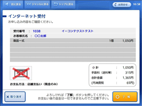 お客様のご注文内容の確認画面が表示されます。