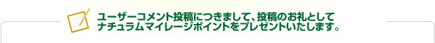 投稿のお礼としてナチュラムマイレージポイントをプレゼントいたします。