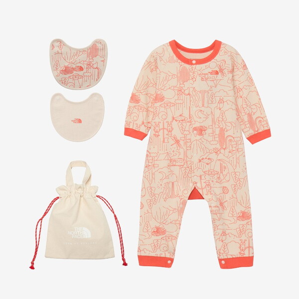 • THE NORTH FACE(ザ・ノース・フェイス) ロングスリーブ ロンパース&2Pビブ ベビー NTB82402 ベビーカバーオール リグリーコーラル(WR)