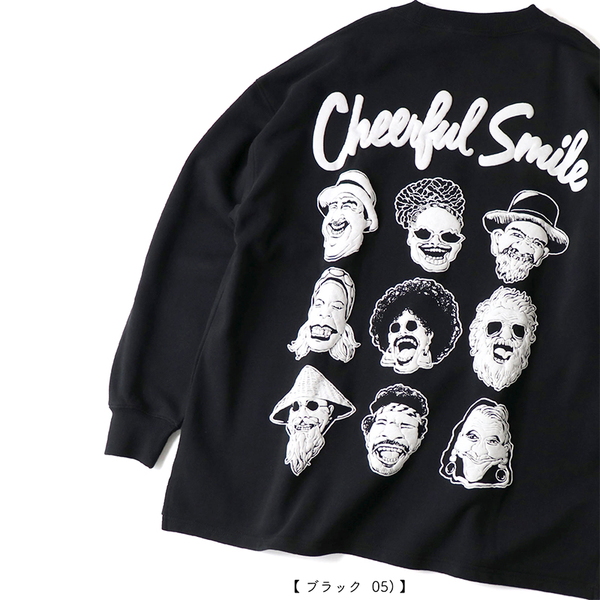 • gym master(ジムマスター) 10.3oz Cheerful SmileスウェットビッグTee G421704 長袖Tシャツ(メンズ) 05)ブラック