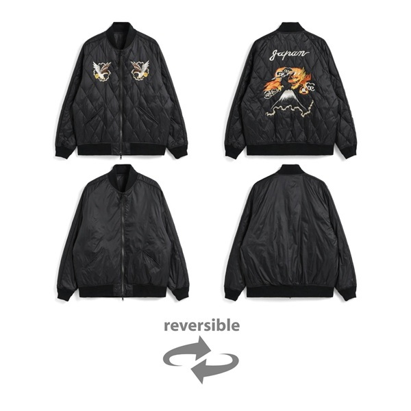 • スカジャンとダウンを組み合わせた、スカジャン風リバーシブルダウンジャケット。
