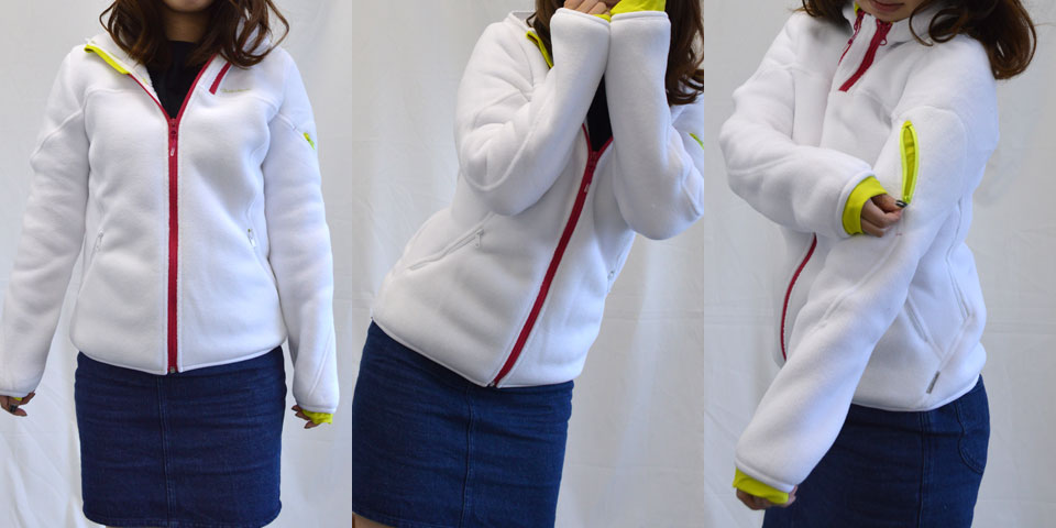妻へのプレゼントとして購入しました 開封してみると白が綺麗で満足度が高いです。 フリースが若干薄いと思いきや着ると温かく 充分とのこと、暑いときは脇のメッシュを開けて 調整できるなど実用性に優れていると思います サイズ表記がもう少し分かりやすいと 選ぶのに迷わないで購入しやすいとは思います。